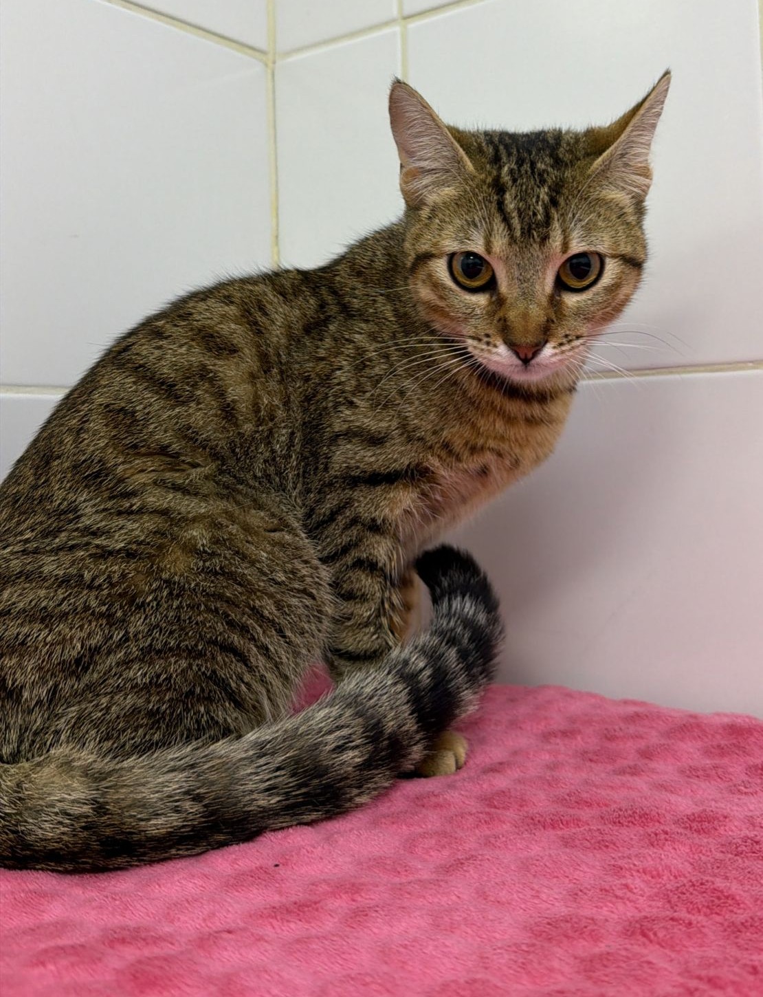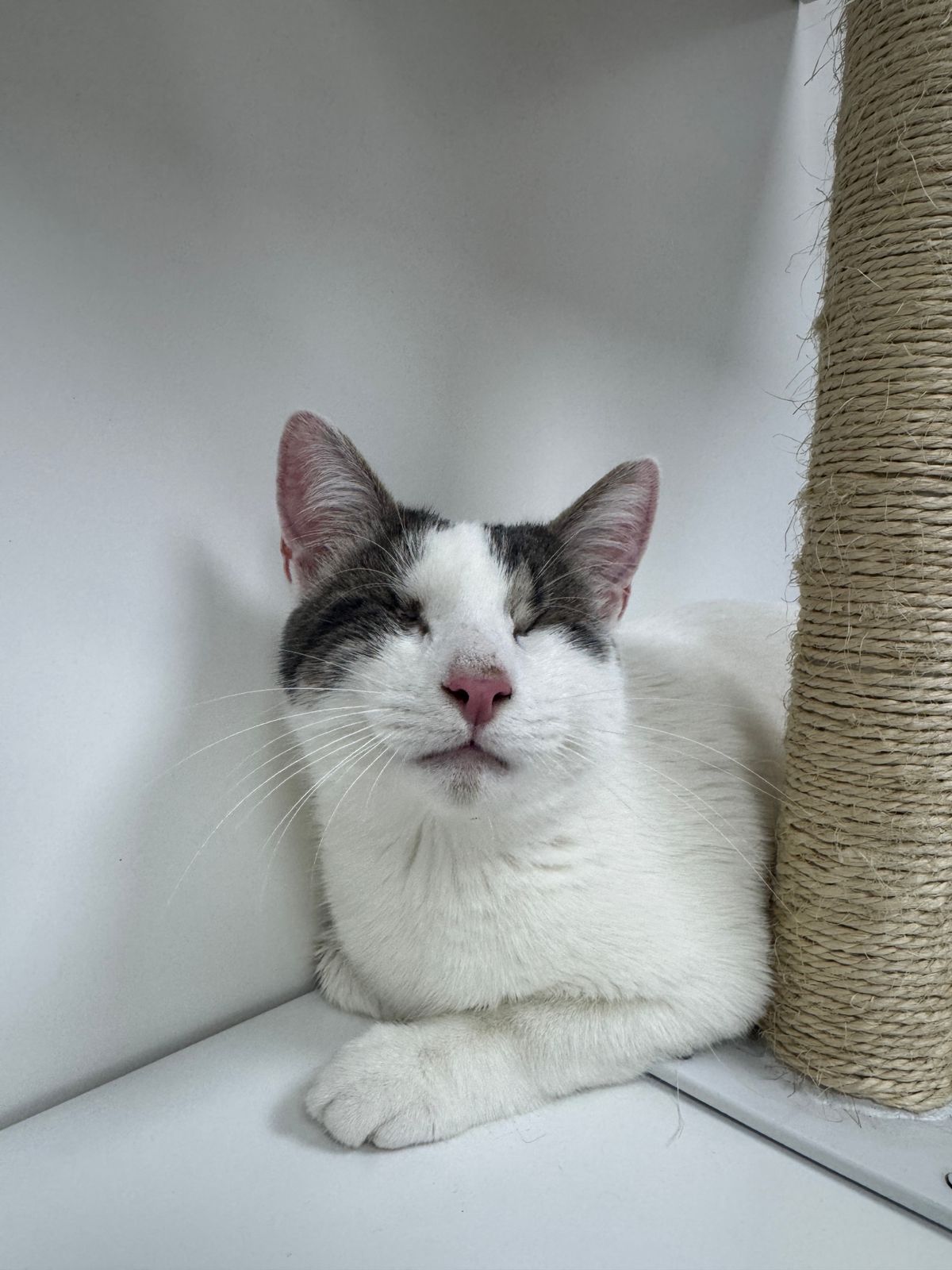 Llego en gestación , tuvo 5 gatitos que fueron adoptados por colaboradores Puppis. Despues de todo Mia encontro el amor para siempre en la familia de Camila,